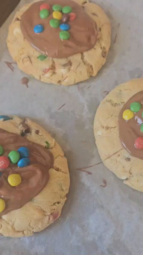 M&M Madness – A colourful cookie explosion with crispy M&Ms and melty chocolate chips in every bite.